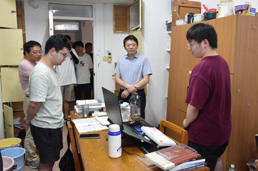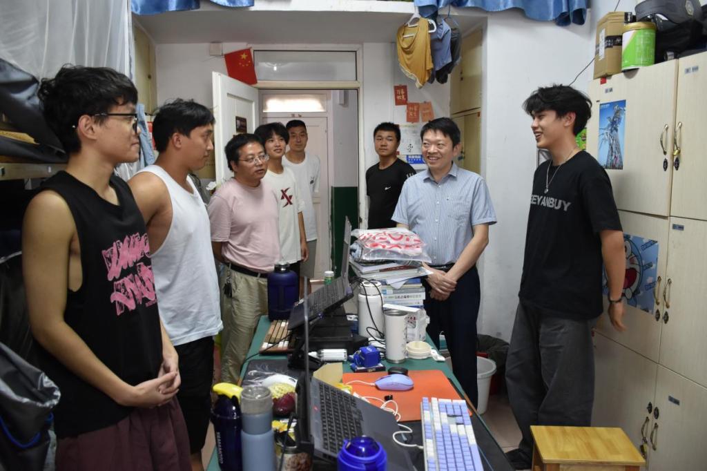 检查过程中,徐书记一行逐一走访了多个年级的学生寝室,与同学们进行了亲切交流。并仔细查看了宿舍的卫生环境、用电安全及基础设施情况,重点排查了是否存在使用违规电器、私拉乱接电线、堆放易燃物品等安全隐患。