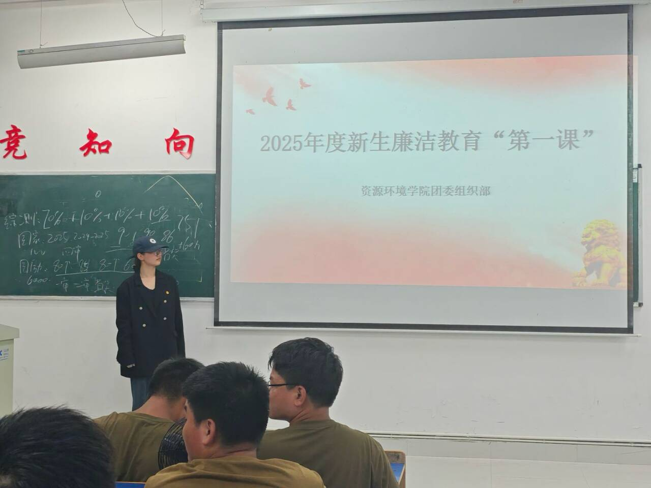 为深入推进廉洁文化建设,引导青年学子树立正确的价值观、权力观和利益观。9月22日晚,学院在香远楼为2025级新生开展系列廉洁文化与价值观教育活动,为学院学风建设注入“廉动力”。资源环境学院组织部夏雨欣为新生作专题宣讲。