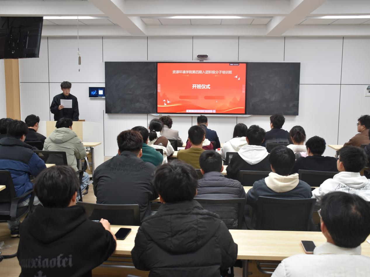 为通过系统化、规范化的培训,深入贯彻落实习近平新时代中国特色社会主义思想,夯实共青团组织基础,提高入团积极分子的思想政治素质,规范入团流程,帮助入团积极分子深入了解共青团的光辉历史,深刻领悟共青团的性质、任务与使命,提高服务社会、服务同学的能力。2025年12月1日晚7点,九江学院资源环境学院委员会第四期入团积极分子培训班开班仪式在香远楼320顺利举行。