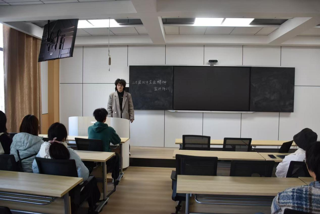 王睿对宣讲团成员提出了明确要求与期望。他强调,作为学生宣讲骨干,首先要原原本本、认认真真学习全会文件及相关精神,做到先学一步、学深一层,确保自身理解准确到位。其次,要注重宣讲方式方法,善于运用青年学生易于接受的语言和形式,将宏大叙事与身边实际、专业特色相结合,讲清道理、讲好故事,增强宣讲的吸引力、感染力和针对性、实效性。最后,要带头践行全会精神,将学习成果转化为推动自身成长、服务同学、促进学院发展的实际行动,在广大同学中发挥好示范引领作用。