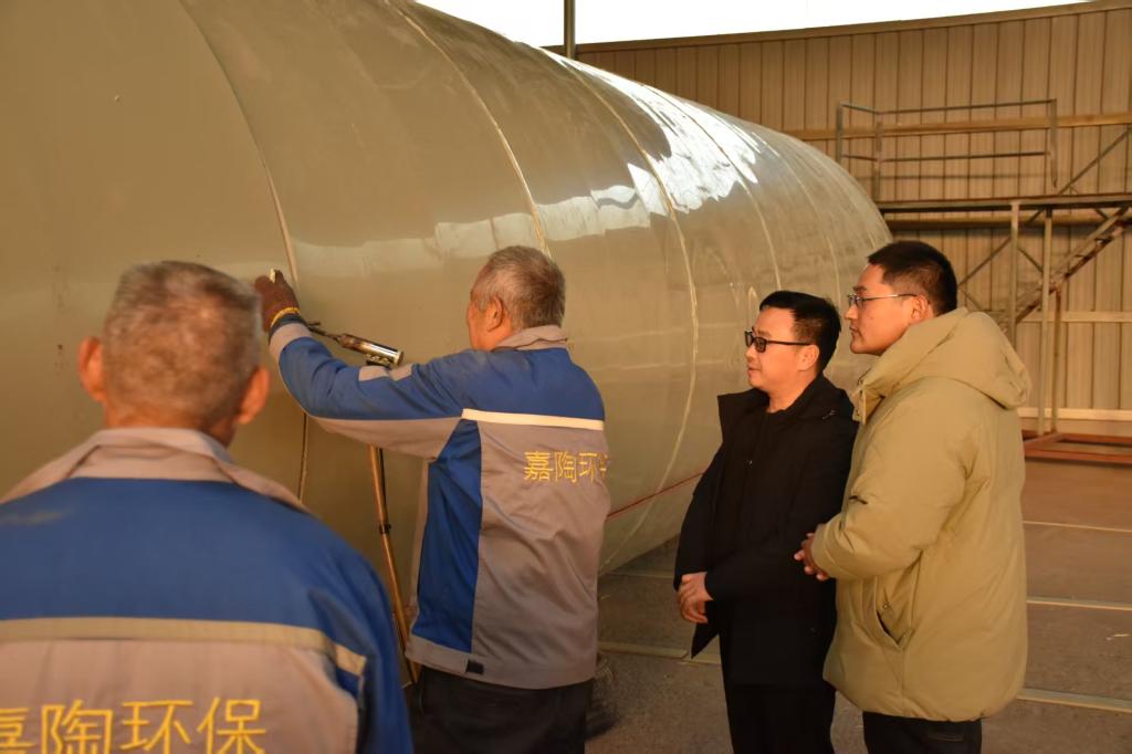 座谈结束后,师生团队在程春明总经理的引导下参观了嘉陶公司的生产车间。同学们近距离观察了环保设备的生产流水线,了解了从原材料加工到成品组装的标准化流程,并对工艺优化、质量控制等环节提出了具体问题。车间技术人员耐心讲解,使学生对环保设备的制造工艺与产业化实施有了更直观的认识。