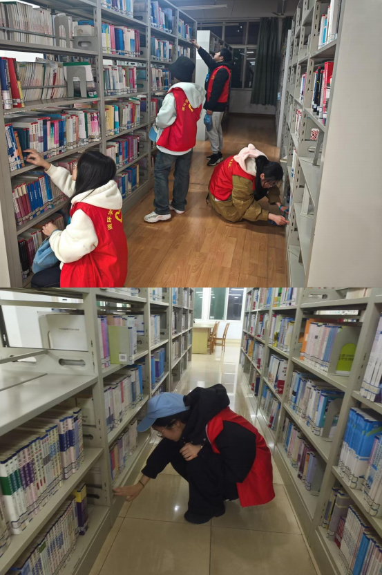 活动前,图书馆老师对志愿者进行岗前培训,明确图书分类、排架整理、环境清洁等工作内容。志愿者们迅速分组、各司其职,于书架与阅览区之间忙碌。大家根据老师安排耐心将散落书籍按索书号精准归位,同时细心擦拭书架、整理阅览桌椅、清扫卫生死角。过程中,同学们轻手轻脚、认真细致,以实际行动维护图书馆安静有序的氛围,用汗水擦亮书香阵地。