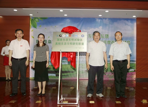 在热烈的掌声中,江西省人大原副主任、省人民政府原副省长、江西生态文明研究促进会理事长胡振鹏教授,江西省生态文明办专职副主任刘兵,九江市副市长李军,九江学院党委书记、江西长江经济带研究院院长赵伟等共同为国家生态文明试验区高校生态文明研究联盟揭牌。